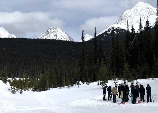 The Canadian Rockies are a world-class destination for winter recreation. With that being said, there are numerous safety hazards that need to be understood and considered before any backcountry winter travel. Our Avalanche Awareness program is designed to introduce students to snow science through performing beacon and snow profile stations, with the primary goal of helping them understand the complexities and dangers of avalanches. This program is not designed to certify students in backcountry travel, but is instead meant to introduce the basic concepts of snow safety.